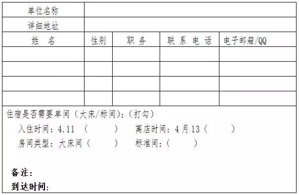 注:請于2018年4月1日前發至秘書處,住宿標準:300-350元/間,含早餐。仔細填寫