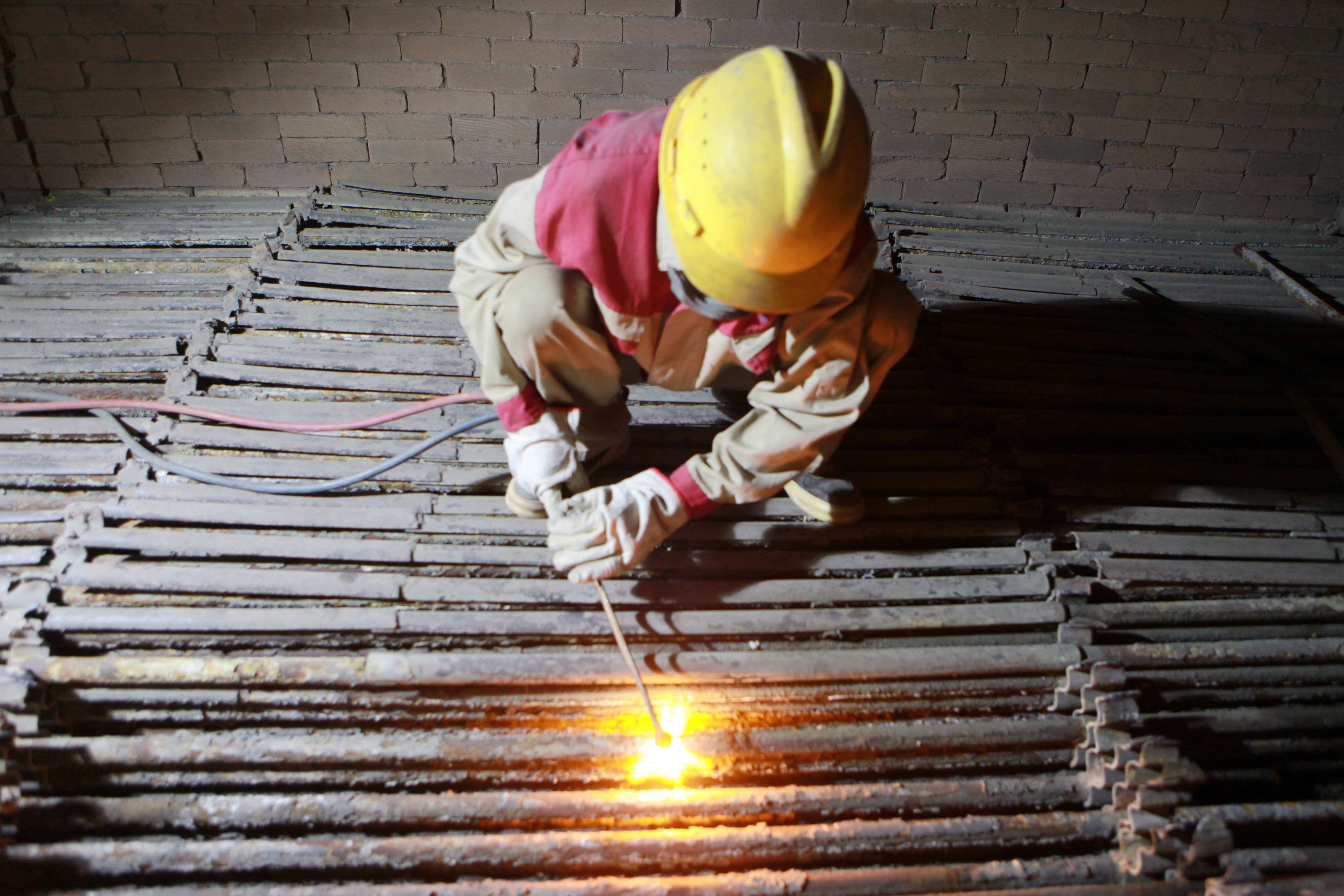 與群眾路熱源站不同,龍山熱源站 3#、4#爐外置省煤器改造工作目前已接近尾聲,管組焊接已經(jīng)結(jié)束,水壓試驗(yàn)、箱體保溫、護(hù)板安裝工作將于近兩天完成。爐前,檢修人員正在檢查爐排上、下部導(dǎo)向裝置的磨損、變形情況,發(fā)現(xiàn)問題及時(shí)修復(fù)、更新。