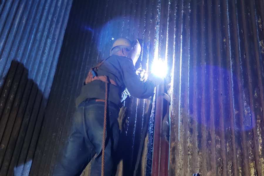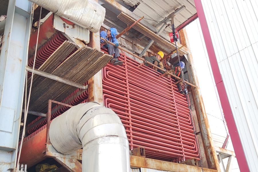 群眾路熱源站 ——內(nèi)置、外置省煤器改造現(xiàn)場(chǎng),工人們正在拆除1#爐原有老舊管組,吊裝、焊接3#爐新管組。站長(zhǎng)孫寶勇介紹說, 省煤器管組已連續(xù)運(yùn)行多年 ,為防止發(fā)生泄漏事故,保障供熱系統(tǒng)安全平穩(wěn)運(yùn)行,今年公司將其列入大修改造項(xiàng)目,對(duì)管組拆舊換新。另一處的重點(diǎn)檢修現(xiàn)場(chǎng),檢修人員正在對(duì) 2#引風(fēng)機(jī)進(jìn)行拆解維修,以解決引風(fēng)機(jī)軸器晃動(dòng)、磨損以及輕微異響問題……
