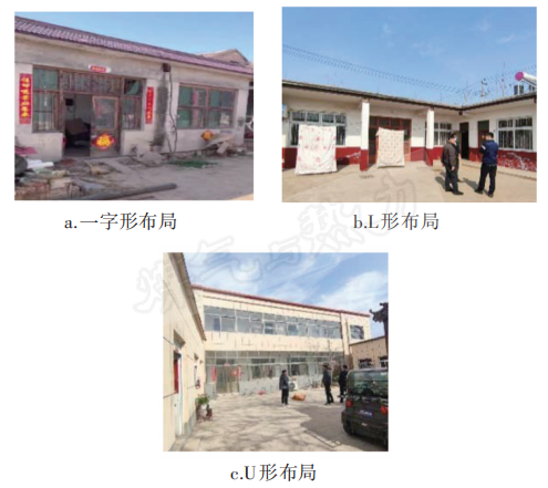 農村住宅大多為20世紀80、90年代建設,由正房和廂房組成。根據廂房布局,農村住宅可劃分一字形、L形、U形,見圖1。正房多為4間,廂房多為2間。正房開間為3.5 m左右,進深在5.0 m以上。正房坐北朝南,為主要居住用房,也有不少的用戶夏季住正房,冬季住廂房。農村住宅建筑面積普遍在80 m2以上。