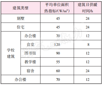 根據調研及查閱文獻,獲得彩石鎮不同類型建筑的平均單位面積熱指標、建筑日供暖時間,見表3。