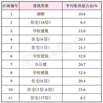 各區域建筑平均集熱量占比見表4。